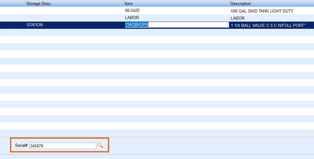 - When a serialized item is selected, a Serial# field will appear on the Invoice screen. The quantity will automatically default to 1.0 and cannot be modified.